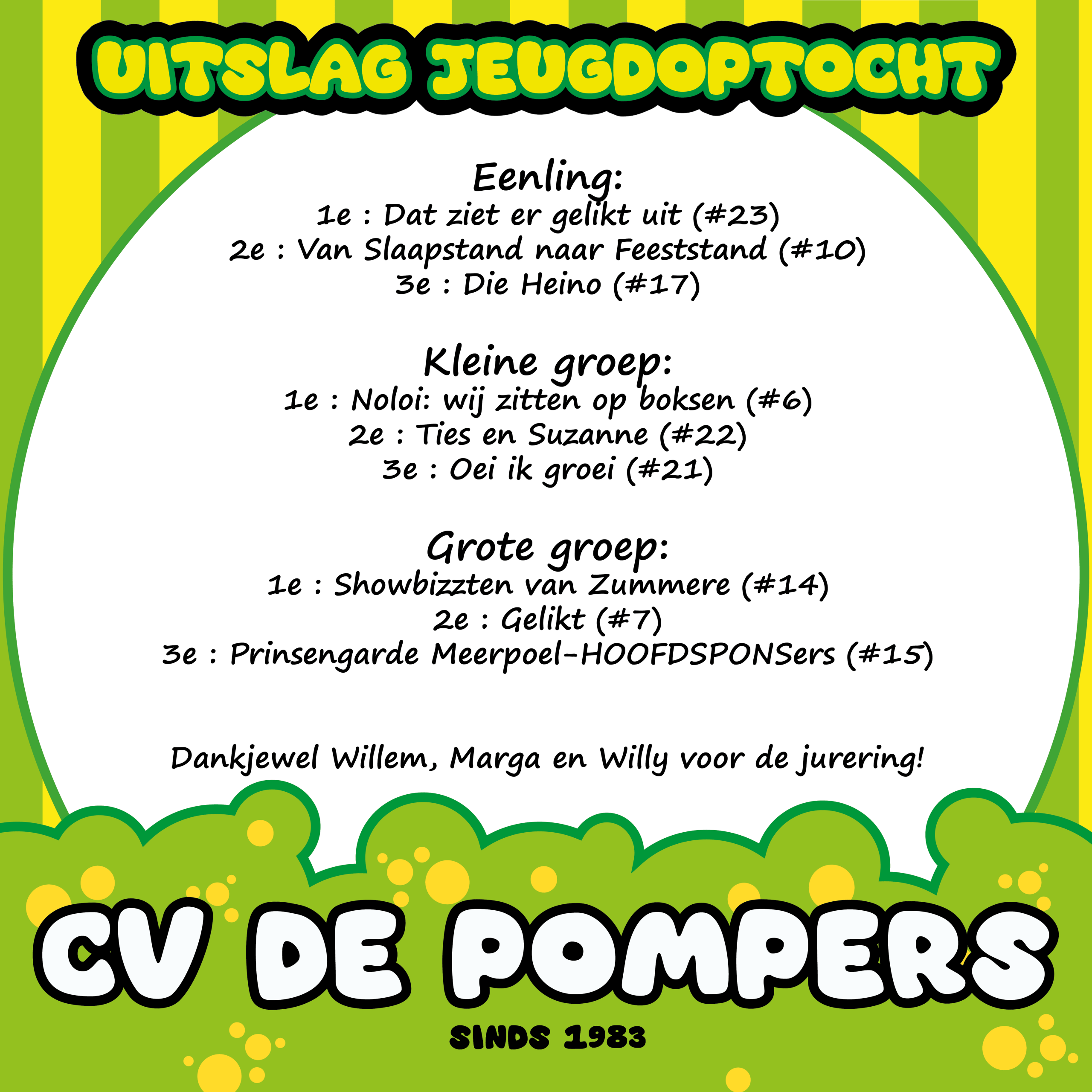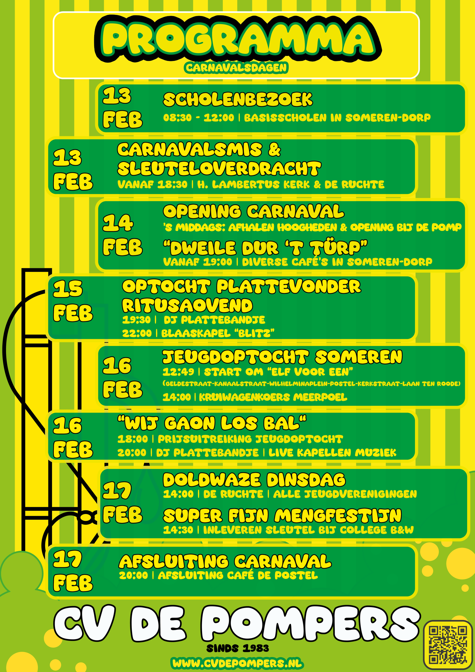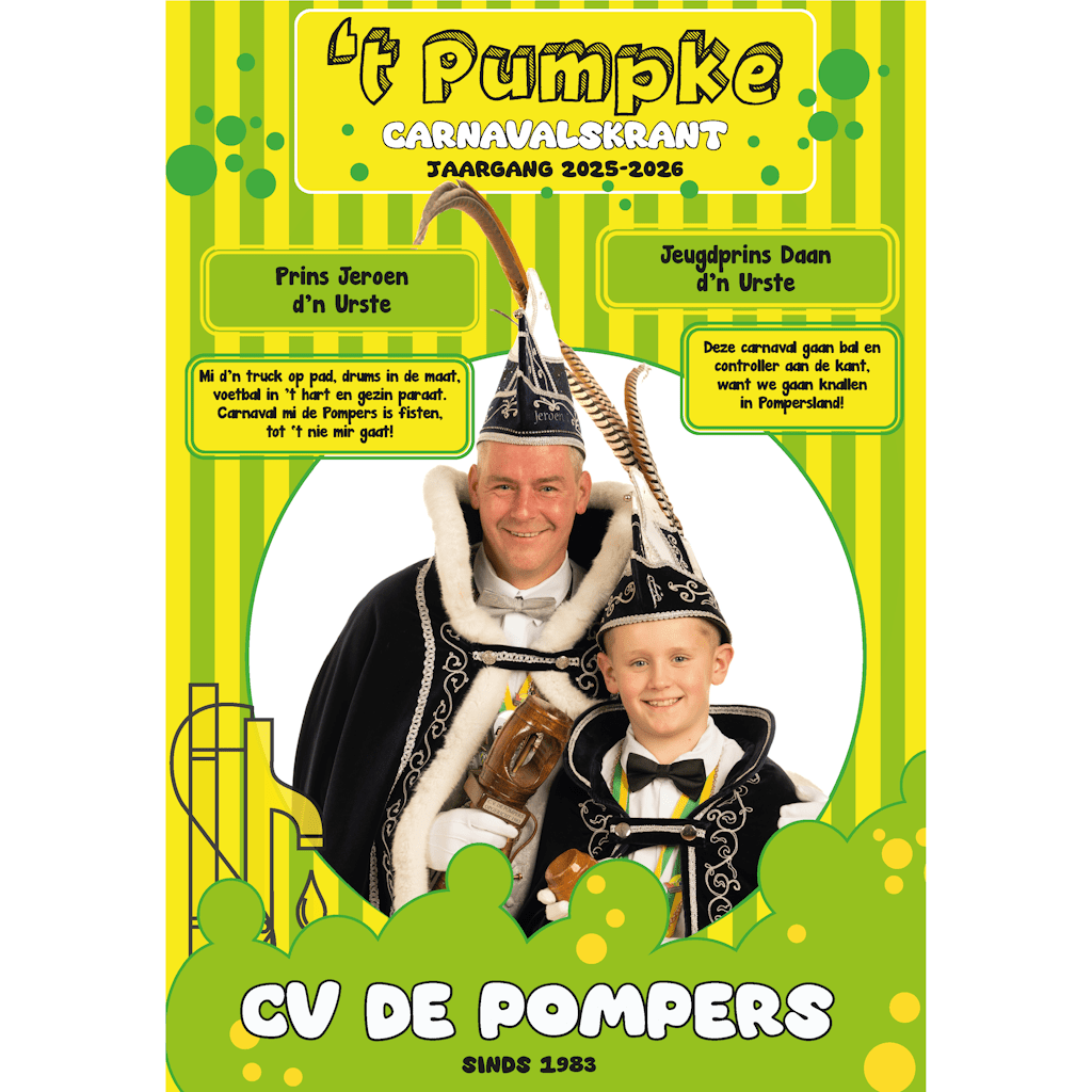Wat leuk dat u interesse toont in Carnavalsvereniging De Pompers. Sinds 1983 een bloeiende, hechte vereniging met een rijk maatschappelijk betrokken activiteitenprogramma.